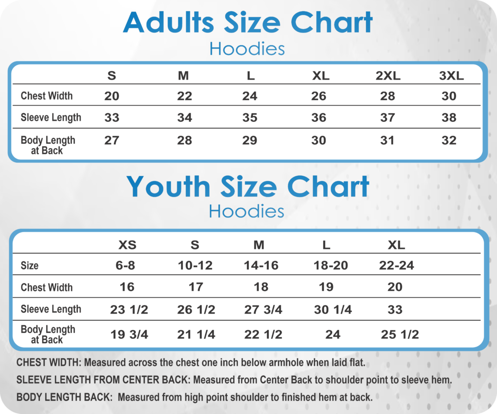 | Youth Size | XS, S, M, L, XL |